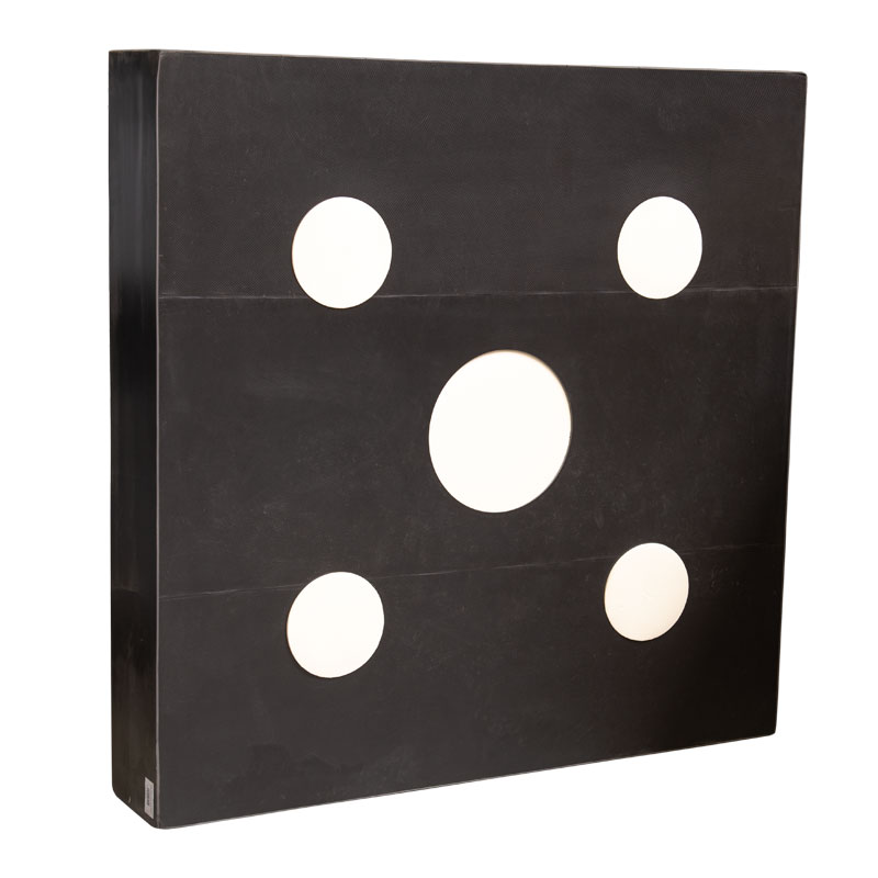 The Avalon Backstop has dimensions of 130x130x21 cm and comes with interchangeable targets. The central target has a diameter of 30 cm, while the 4 auxiliary targets each have a diameter of 19 cm.