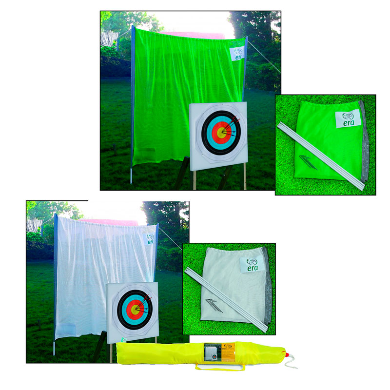 – Ready to use safety net kit (nets + stakes) – 22 pounds and arrows diameter 5.5mm – Knitted material 100% polyester 1100 Dtex, 380 gr / m² – Mesh 4mm x 1mm resisting to UV – Coated steel pegs – Sheath for insertion of pegs before installation – Individual bag for transport