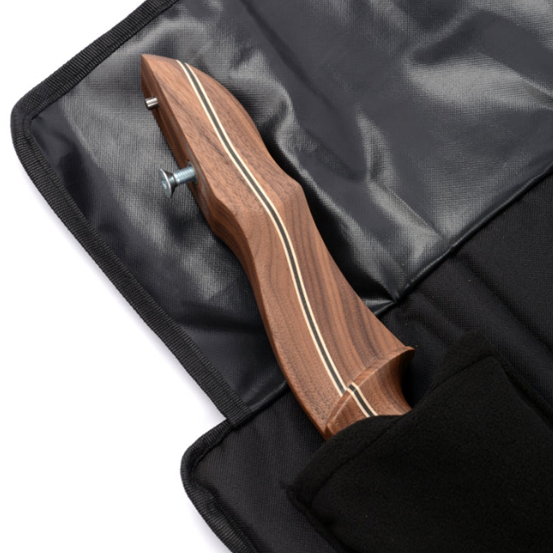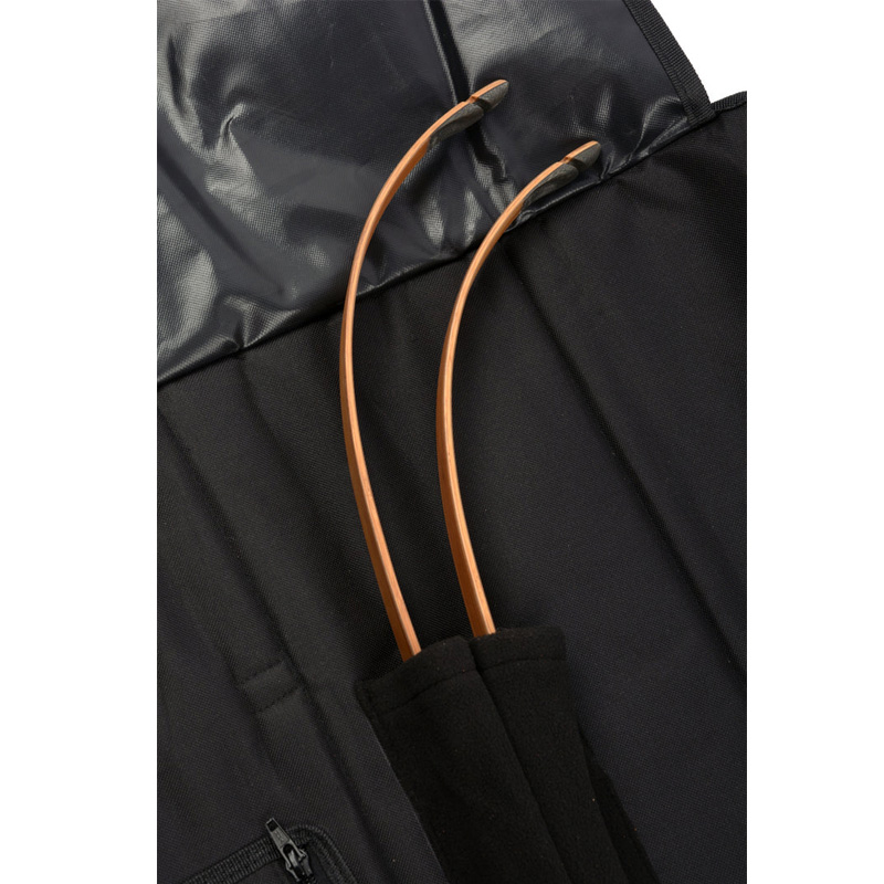 We had long envisioned creating a special case for bows. Our deluxe bow cases protect each part of the bow from damage caused by strong impacts with a special inner lining. Thanks to its various handles, the bow case can be easily carried by motorcyclists and cyclists. The extra-large accessory pocket offers plenty of space for an armguard and shooting glove.