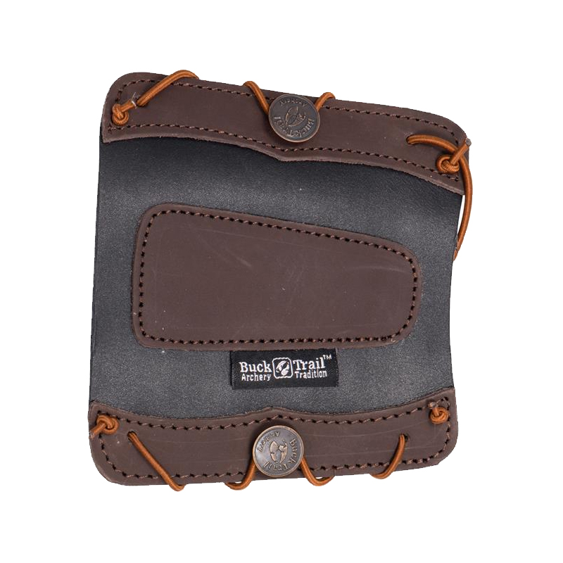 Traditional quality arm guard by Buck Trail. Black leather base with brown leather reinforcements.