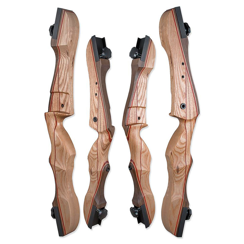 Easy assembly for beginners, made of high-quality laminated wood including ash, palisander, and dymond walnut. It fits all screw-on limbs. 24-inch riser, accepts limbs of 66, 68, and 70 inches.