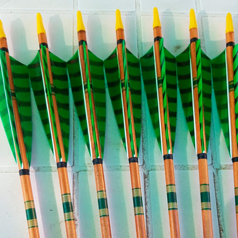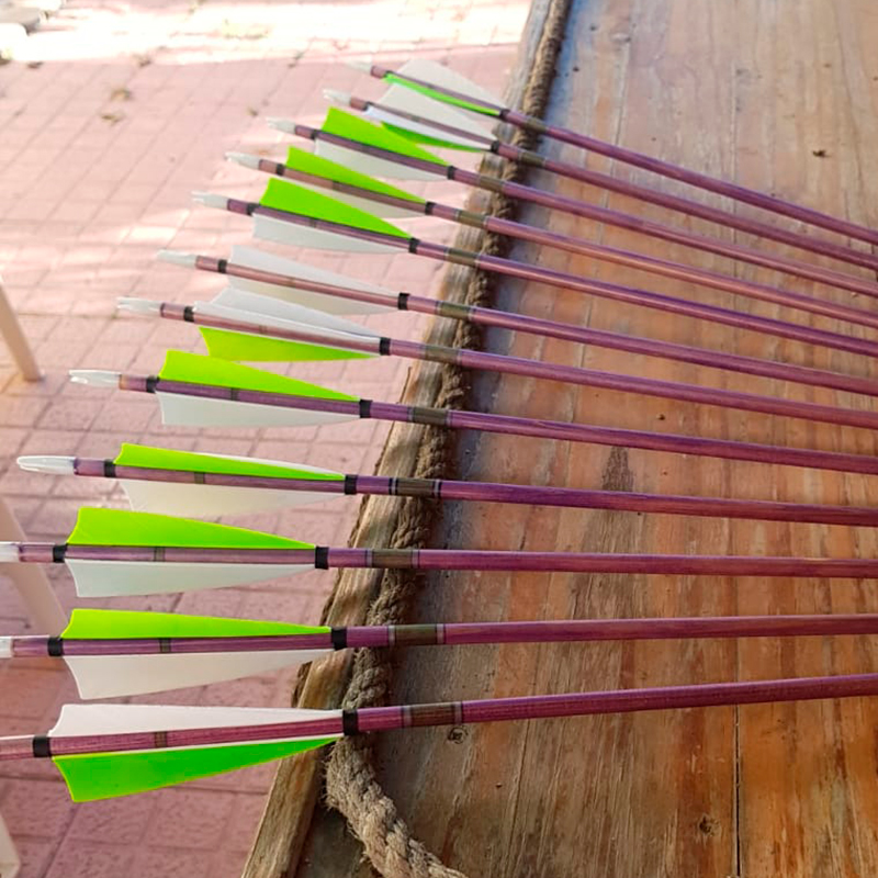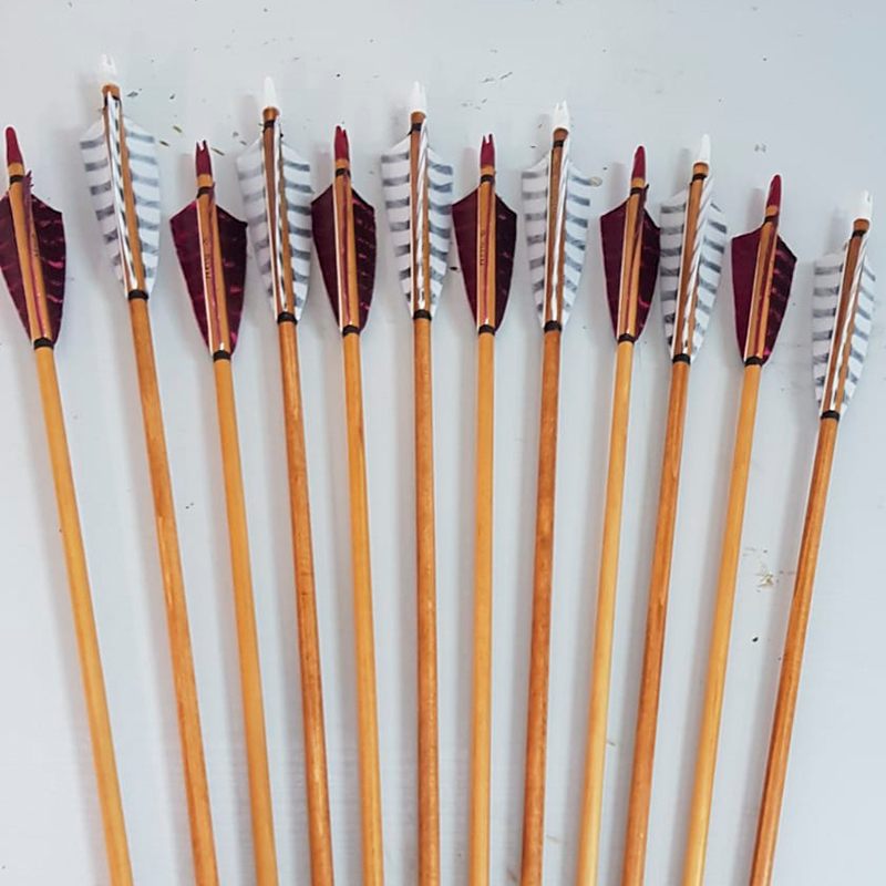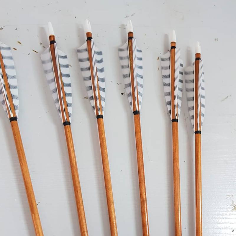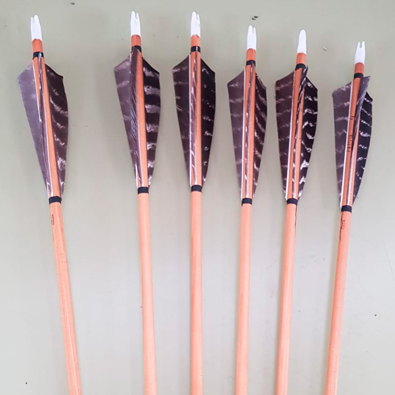 Pack of 6 traditional arrows custom-built in the workshop by skilled craftsmen.