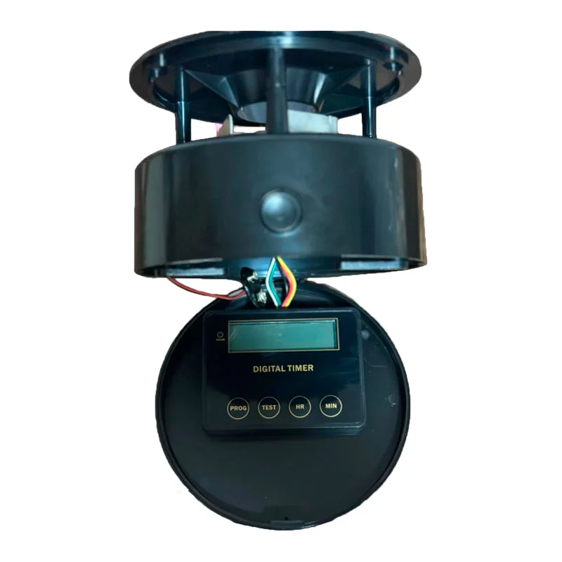 Fabricado con materiales resistentes y pensado para exteriores, este dispensador incluye una entrada para placa solar, opción de alimentación por batería de ácido plomo 6V o 4 pilas AA (no incluidas), y cuenta con 3 niveles de potencia de dispersión.