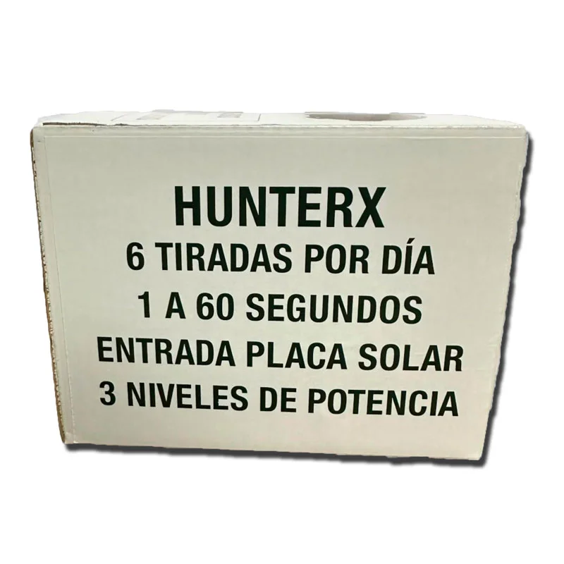 El Dispensador Electrónico de Grano HUNTERX es la solución perfecta para automatizar la alimentación de animales en actividades como caza, ganadería o conservación de fauna. Gracias a su programador digital integrado, puedes establecer hasta 6 tiradas de alimento por día, con una duración ajustable entre 1 a 60 segundos cada una.