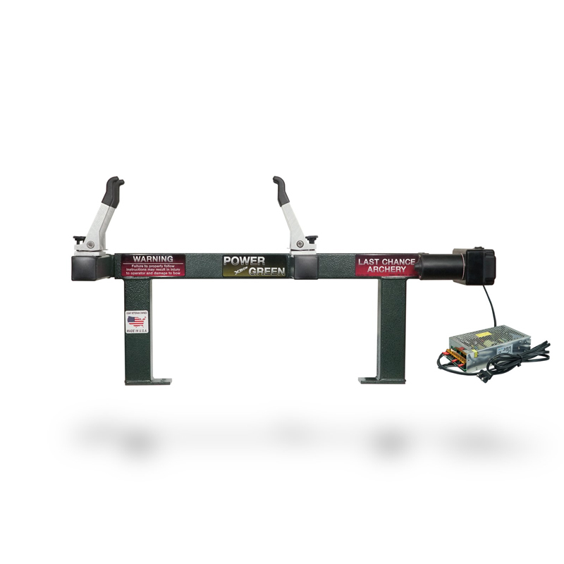 While pressing the bow, you are not applying any additional pressure to the limbs, nor is there any twisting of the riser. The Power Green Crossbow moves in and out using an electric motor for quick and smooth movement. This particular press model has a range from 11″ to 32″ axle-to-axle length.