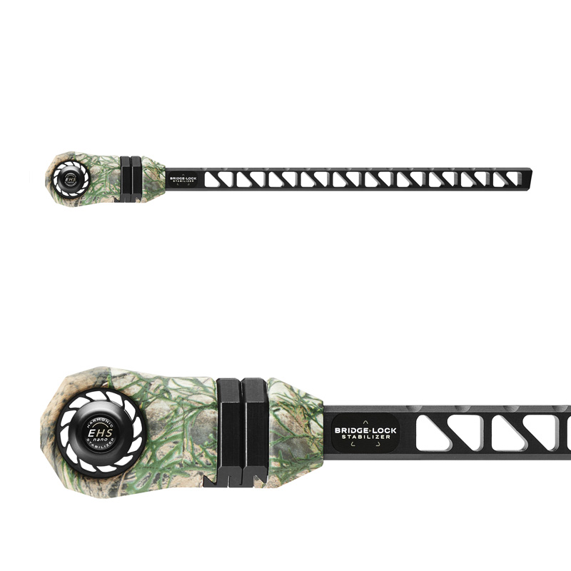 This hunting stabilizer uses Mathews’ exclusive Bridge-Lock technology. These new stabilizers integrate directly into the riser, creating a stiffer connection and better balance point. With Mathews’ patented InterLink™ weight technology and a quick disconnect knob that allows for adjustments in 1/2″ increments, the Bridge-Lock stabilizers offer a new level of harmonic adjustment and customization in a single bar.