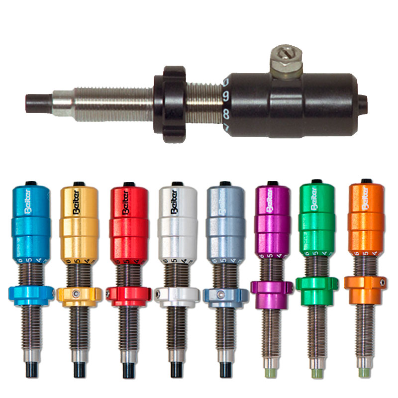 The Beiter Plunger consists of a threaded cylinder made of refined high-quality steel, stainless harmonic steel springs, and a grooved scale cylinder and slotted nut made of anodized aluminum. The Plunger Pin, made from materials that offer excellent sliding properties and wear resistance, is compatible with aluminum, carbon, and carbon-aluminum arrows.