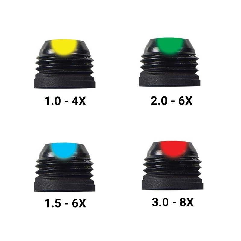| Apertura | 1/4″ (0.63cm), 1/8″ (0.31cm), 1/16″ (0.15cm), 3/32″ (0.23cm), 3/64″ (0.11cm) |