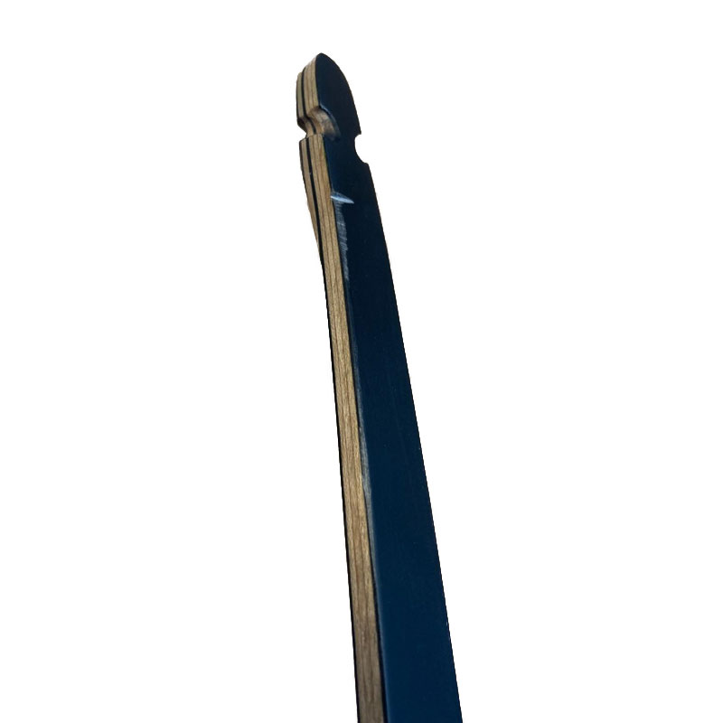 El cuerpo del arco es laminado y las palas de arce con fibra de vidrio negra con una distancia fistmele de 7” a 7,5”.