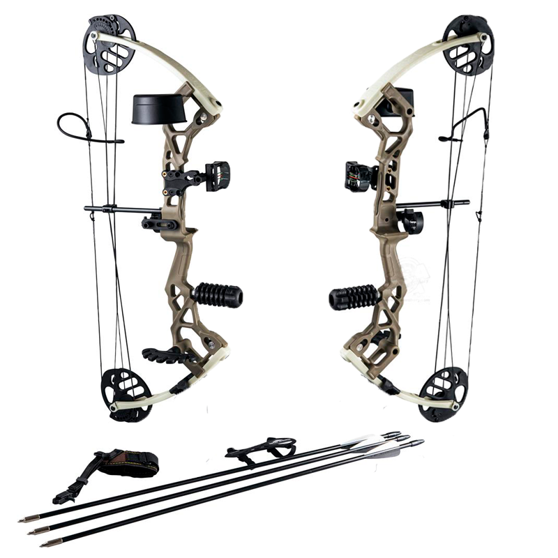 Este modelo incluye un kit completo con todos los accesorios necesarios para comenzar desde el primer momento: arco, disparador, visor, reposaflechas, carcaj, estabilizador, protector de brazo, peep sight, 12 flechas, manual y llaves Allen.
