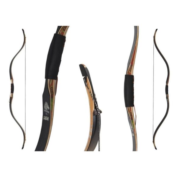 El Black Sada es un hermoso arco concebido para el tiro a caballo con laminados incrustados de maderas de diferentes colores en el mango, extremidades de madera de fibra de vidrio negra y ambidiestro, por lo que se puede usar en cualquier mano. también se incluye una cuerda D-75.