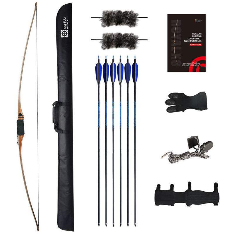 El kit arco recurvo tradicional Longbow Royal X8 incluye: