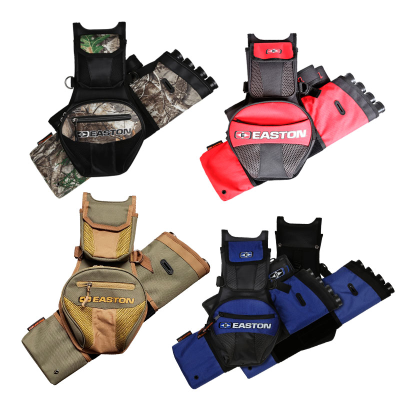 Carcaj Easton para Ambidiestro de 4 tubos individuales. Diseño tanto para diestros como para zurdos con bolsillos y ganchos reversibles de talla única. Fabricado en polyester de alta densidad y muy resistente. Tubos moldeados por inyección para separar flechas y evitar roces y daños indeseados.