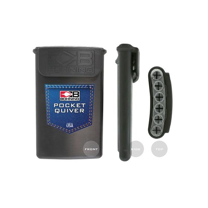 El nuevo Pocket Quiver de Bohning proporciona una manera segura, cómoda y segura de llevar flechas con punta de entrenamiento. El versátil Pocket Quiver tiene capacidad para seis flechas de cualquier diámetro y se puede deslizar en un bolsillo trasero o en un bolsillo de la cadera, o sujetar a un cinturón o correa de mochila. Brinda un acceso rápido y fácil a sus flechas.