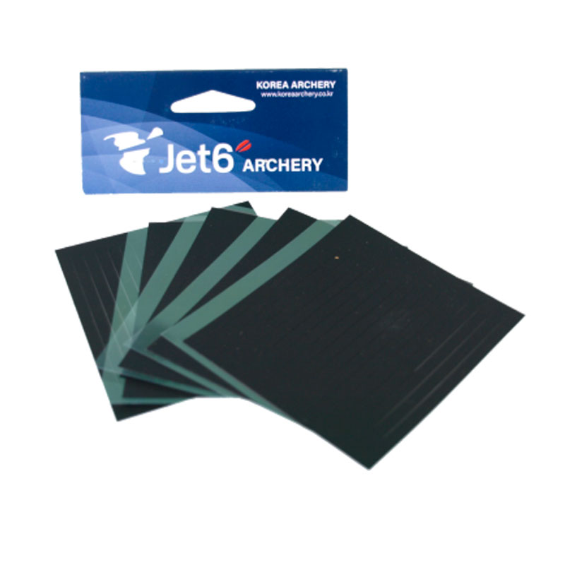 Vendido en pack de 5 hojas. Cada hoja contiene 17 unidades, suele usarse una tira por cada flecha