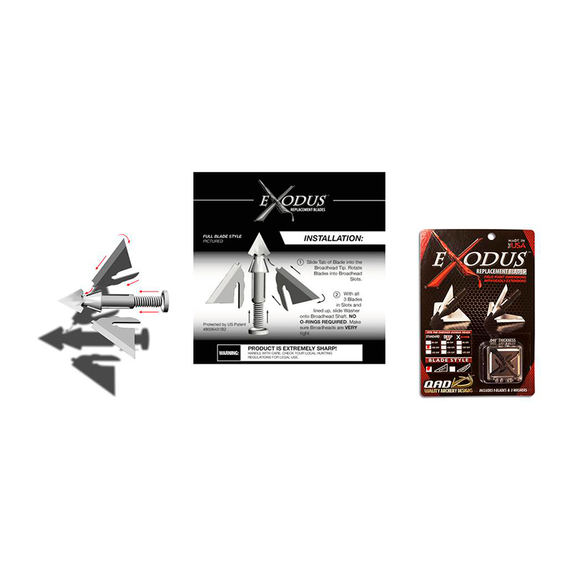 Cuchillas de repuesto Exodus diseñadas y fabricadas 100% en Estados Unidos. ATENCION: Las cuchillas son extremadamente cortantes.