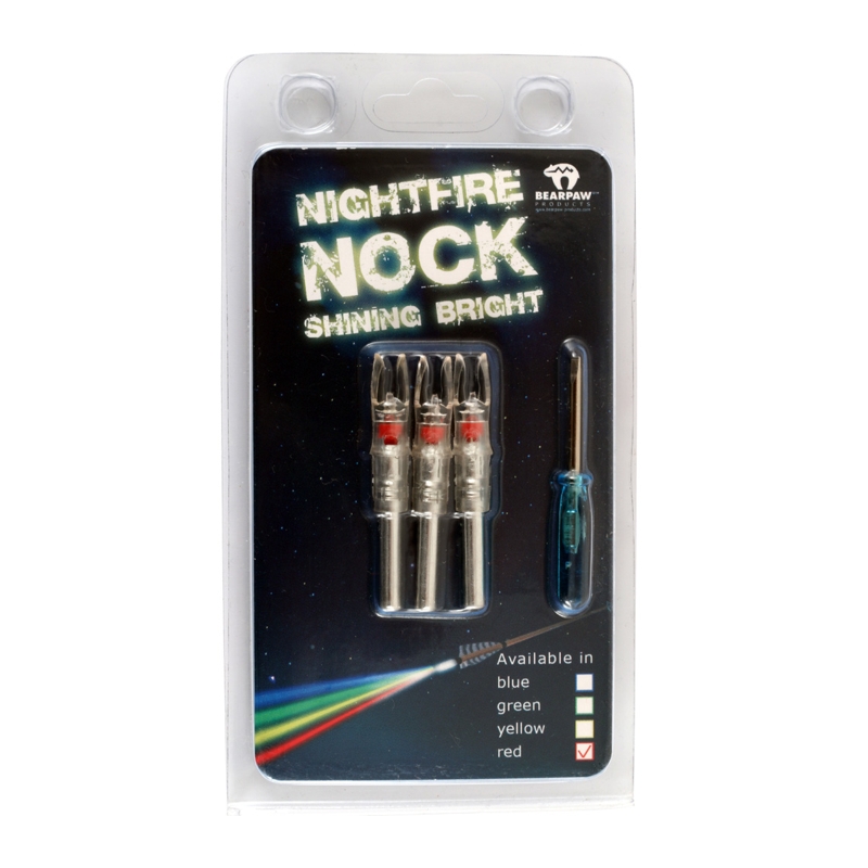 Dentro del Nightfire Nock hay un microinterruptor que se activa cuando se suelta la flecha. El culatín se desactiva más tarde por medio de una punta de flecha o el pasador de metal incluido. Hay una pequeña abertura en el costado del culatín para este propósito.