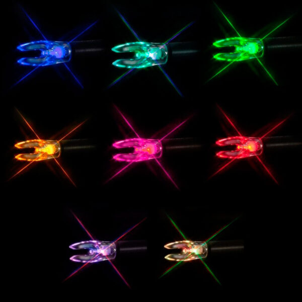 Con más de 20 horas de duración de batería de litio, cada Nockturnal Fit pesa aproximadamente 25 grains y se mantendrá brillante durante mucho tiempo para recuperar la flecha, siendo fácilmente visible tanto de día como de noche. Disponible en rojo, rosa, verde, azul y naranja.