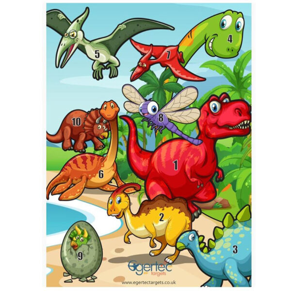 Diseño de diana para tiro con arco recreativo o de juego con dibujo de dinosaurios.