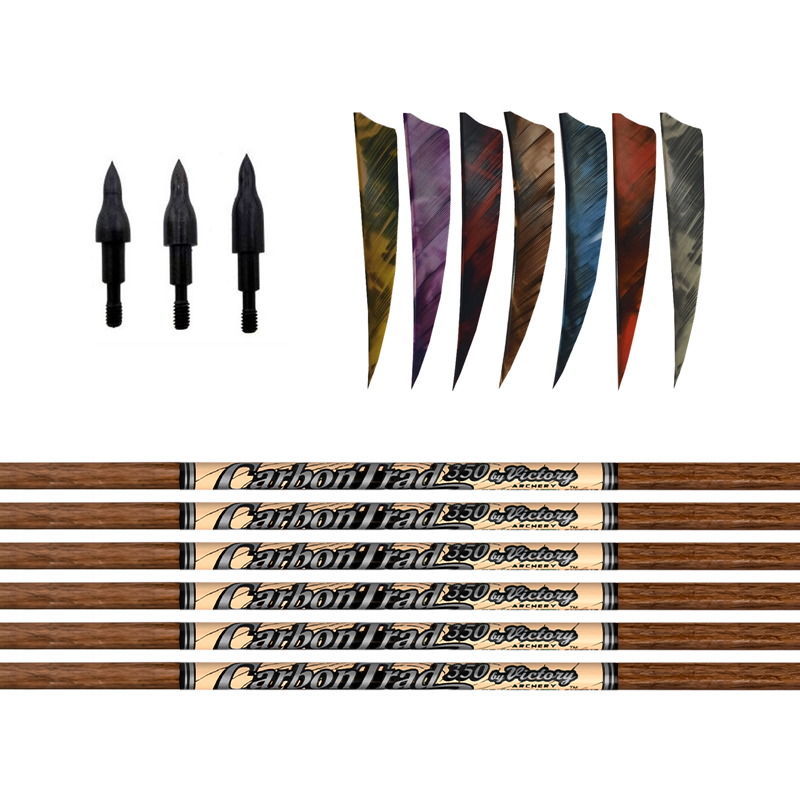 Flecha completa Victory Carbon Trad Sport con pluma natural escudo Gateway Feathers 4″.