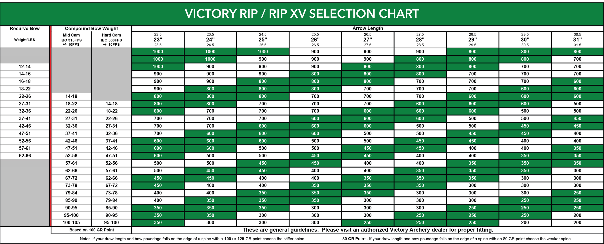 IMPORTANTE: Ver tabla de spines o durezas para elegir la flecha adecuada según la potencia del arco.