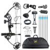 El arco de poleas Topoint Starting 28 es un arco ideal para novatos. Se puede ajustar tanto en apertura (de 19″ a 30″) como en potencia (de 19 a 60 libras) sin necesidad de prensa, haciéndolo adecuado para cualquier arquero.