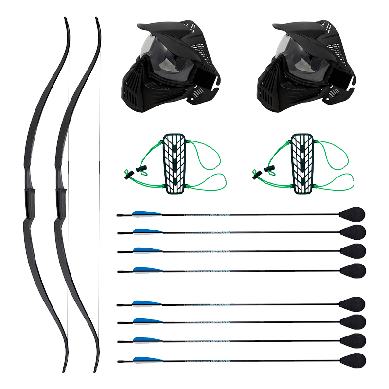 El Kit Duo completo de 2 arcos snake para ambidiestros con flechas “battle archery” para ambidiestros es un kit ideal para hacer batallas entre arqueros de una manera segura. Los arcos están adecuados a la potencia recomendada y el kit viene con todas las protecciones necesarias (2 máscaras y 2 protectores de brazo).
