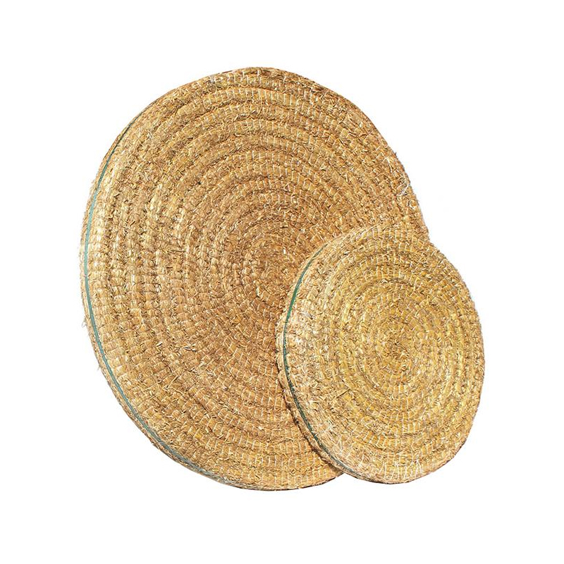 Parapeto de paja para arcos tradicionales/recreativos de peso bajo a medio. Disponible en 80 cm y 128 cm de diámetro. Grosor: 9 cm