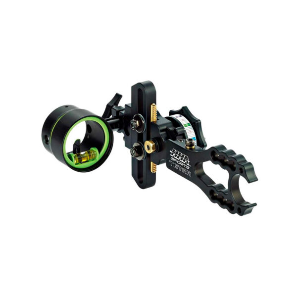 Visor de Caza HHA Tetra 5510 de 1 Pin de .010″ o .019″ de 1″ 5/8 para diestro (RH) o zurdo (LH) con reostato tiene más de dos décadas de tecnología se unen para proporcionar uno de los visores más versátiles, livianos y resistentes disponibles. El Tetra ofrece un recorrido suave de 2,1” con elección de marco fijo o barra de cola de milano. Alta precisión con el sistema R.D.S. Las cintas de mira y el ajuste preciso de la deriva proporcionan una gran precisión en caza y recorridos 3D. Con ajuste del segundo y tercer eje y una línea completa de accesorios. Un ajuste de deriva de dos etapas hace que la visión sea fácil y precisa. Totalmente sin herramientas, una vez que el Tetra está montado en su arco, puede guardar el juego de llaves y realizar pequeños ajustes en el campo. Con marcas grabadas con láser y perillas de ajuste fáciles de usar.